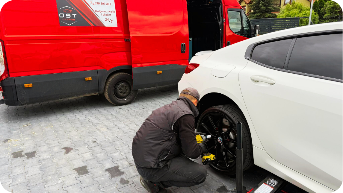 Przyjeżdżamy na miejsce – wymieniamy, naprawiamy, wyważamy i diagnozujemy. Działamy przez całą dobę – szybko, solidnie i bez stresu.